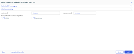 Create Synonym for the Adapter for SharePoint creates the metadata used for sending SharePoint API requests and displaying the data returned.