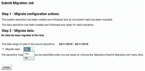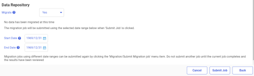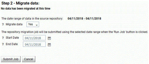 Start DateThe starting date of the data to be migrated. The default value is the earliest date in the old repository.