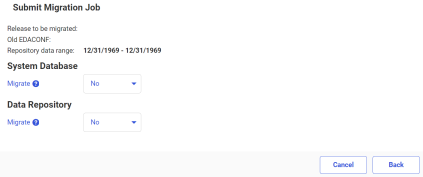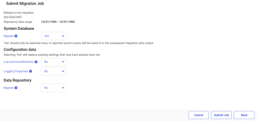 - From the Data Repository Migrate drop-down menu, select Yes if the previous release data repository should be migrated. The default value is No.