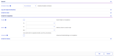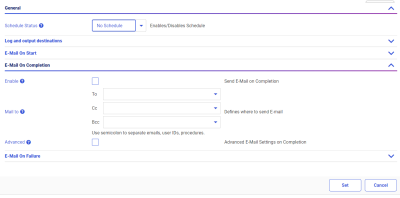 4. If you select Active or Inactive from the Schedule Status drop-down menu, the Manage Schedule and E-Mail for procedure pane opens with more fields, as shown in the following image.