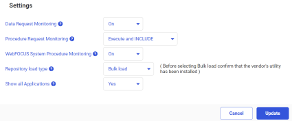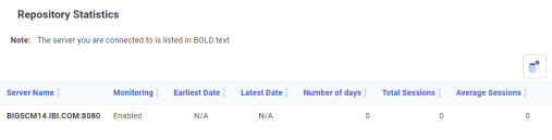 The WebFOCUS Reporting Server will write all information regarding monitored sources to a log file. This log file is then archived to the Resource Management repository at predetermined intervals or limits, while the server is running. The current log is also archived when the server starts or when the administrator submits a job from the WebFOCUS Reporting Server browser interface of a running server.