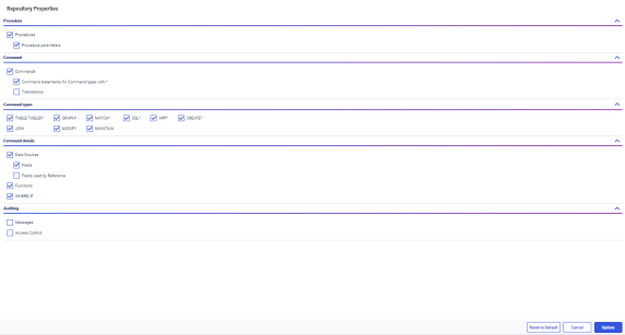 The following table shows the relationship between the Repository Properties and the log record types, as well as the corresponding repository entries.