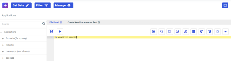 Note: There is no need to save the procedure first. It is normal to see warnings and npm update failed messages. Any other fail messages should be investigated and reported. - Navigate to the Workspace page by clicking the Tools icon in the banner and selecting Workspace, as shown in the following image.