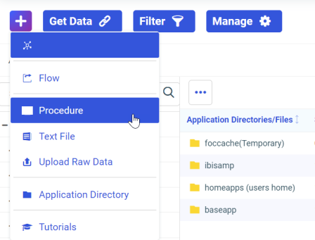 and select Procedure from the menu to create a procedure, as shown in the following image.