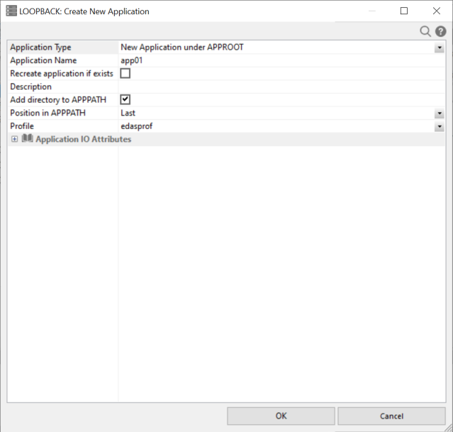 The Create New Application dialog opens, as shown in the following image.