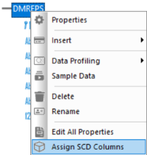 Sets slowly changing dimension attributes. This option is only available for existing relational targets and is only used by a flow when SCD is enabled in the target object.