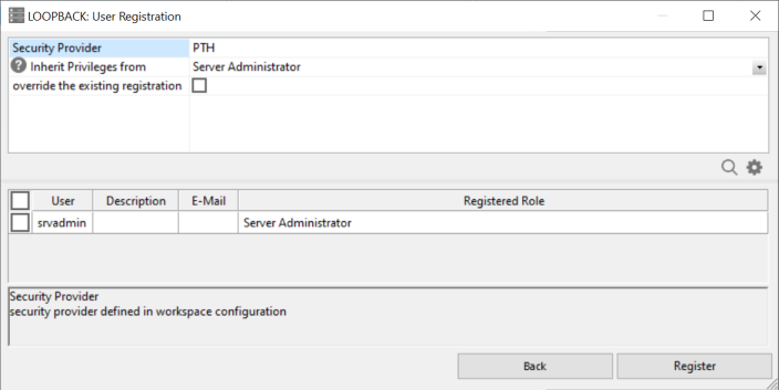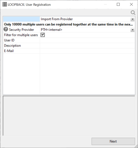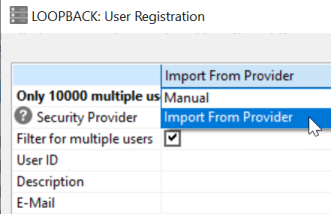 If you select Import From Provider, the security provider provides the list of users available for registration.