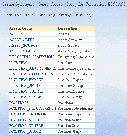 Synonyms - Select Access Group for Connection window, click a hyperlinked