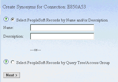 The adapter provides two methods to select PeopleSoft Records to create synonyms: