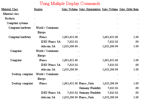 In SAP BW 3.0B and higher, multiple characteristics of the query can be expanded in a hierarchical display.