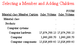 As illustrated in the previous example, a tuple is a combination of members from different dimensions of a cube. The previous tuple contains members from all dimensions and, therefore, addresses a single cell. If a tuple contains only members from some dimensions, it addresses not just one cell but a whole slice of cells in the cube. For example, the following tuple does not include either Region or Time dimension members: