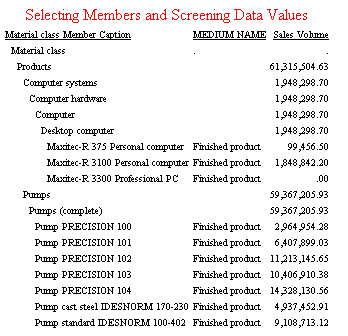 Once hierarchy members are selected, you can screen the retrieved dimension data by applying WHERE tests to the selected members.