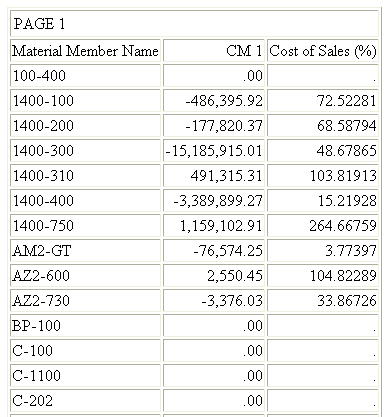 USAGE=D18.5, ACTUAL=D8, MISSING=ON, TITLE='Cost of Sales (%)',