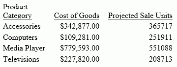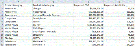 - For the Projected Sale Units field in the rows that correspond to product categories Camcorder, Stereo Systems, and Video Production, which are not represented in the Excel file.
