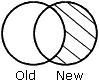 The results of each phrase are graphically represented using Venn diagrams. In the diagrams, the left circle represents the old data source, the right circle represents the new data source, and the shaded areas represent the data that is written to the HOLD file.