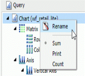 - If you are working with a report or chart in HTML format, you can also access Sum, Print, List, and Count aggregations from the shortcut menu on the report or chart component.