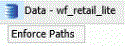 Enforcing Paths can be enabled for any individual procedure by clicking the Enforce Paths button (the silo container) to the left of the Data title in the Resources panel. This container is shown in the following image.