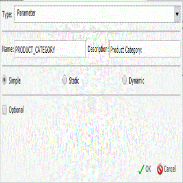 Note: Parameter is selected, by default, when you are defining a prompt.