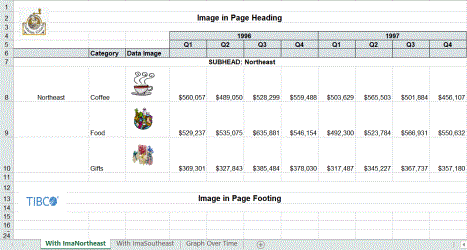 - Images and graphs can be embedded within a component, but images and drawing objects (lines, boxes, strings) defined in Compound Layout syntax on a page layout will not be included in the generated workbook.