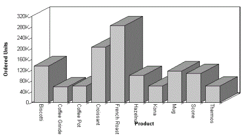 GRAPH FILE GGORDER SUM QUANTITY AS 'Ordered Units' ACROSS PRODUCT_DESC END