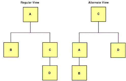 If you are using certain network or hierarchical data sources such as IMS, CA-IDMS/DB, or FOCUS, you can rotate the data source, creating an alternate view which changes some of the segment relationships and enables you to access the segments in a different order. By reporting from an alternate view, you can do the following: