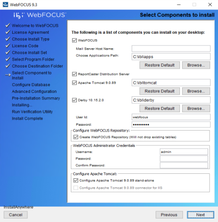 The installation will configure WebFOCUS, using the Microsoft IIS web server and Tomcat as the application server.