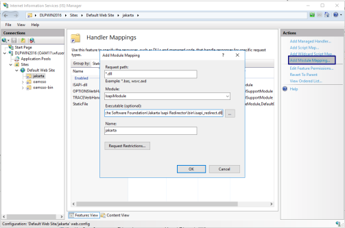 - From the Module dropdown list, select IsapiModule.