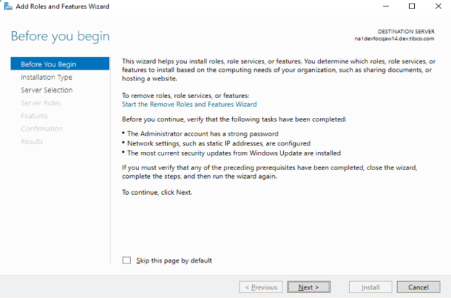 The Add Roles and Features Wizard opens, as shown in the following image.