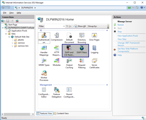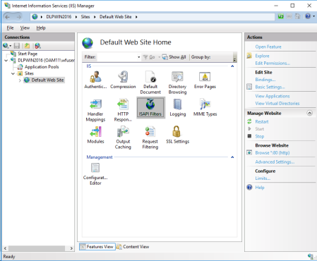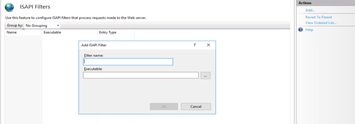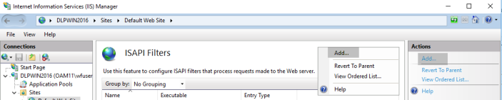 the Actions pane. You can also right-click the ISAPI Filters pane