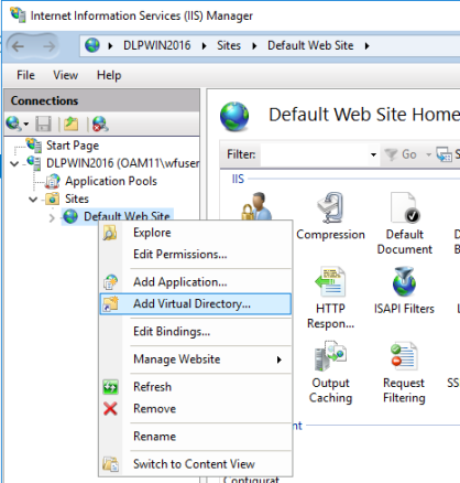 Web Site and select Add Virtual Directory from