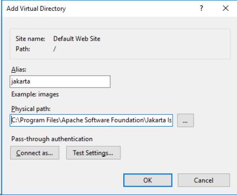 The Add Virtual Directory dialog opens, as shown in the following image.