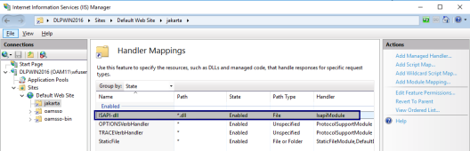 The Handler Mappings pane opens, as shown in the following image.