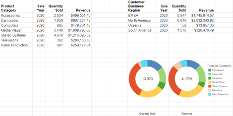 The following images show the first and second worksheets in the pivotwithchart.xlsx workbook after you run the sample procedure.