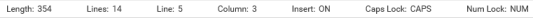 - Insert. Indicates the status of insert or overtype mode. This setting is controlled by the Insert key on your keyboard. When the value for Insert is ON, your keyboard is in insert mode, and text is placed in front of the cursor position. When the value for Insert is OFF, your keyboard is in overtype mode, and existing characters are overwritten.