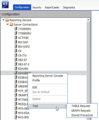 - Select the Configuration tab, expand Reporting Servers, and then expand Server Connections.