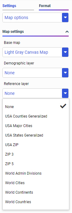 - Reference Layers. Display a layer of boundaries and locations that range from a continental scale to country, state, and even local neighborhood. For example, if you are viewing World data on electricity usage, you may want to add a Reference Layer that displays the borders and concentration of your data within each country.