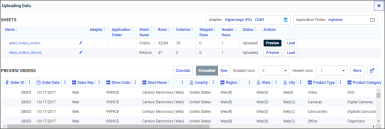 Your file is loaded to the default data store of the displayed Adapter. You can click the Adapter name to select an adapter folder and connection where your data is loaded. For more information Changing A Target Connection When Uploading Files.