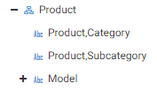When placed in certain sort buckets, fields display icons indicating the sort order of the field and provide an option to use the field as a matrix row or column if it is used as a dimension, or switch y axes to create a dual-axis chart, if the field is used as a measure in certain chart types. In the following image, the vertical bucket contains a matrix row field and a vertical axis measure field.