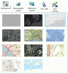 Both mapextent and the Layers menu functionality are applied to your map when you select a Background, Reference Layer, or Demographic Layer. Mapextent is an automatic view of the map. Layers is a menu that appears on the map and provides access to options that allow you to adjust the information that is being displayed.