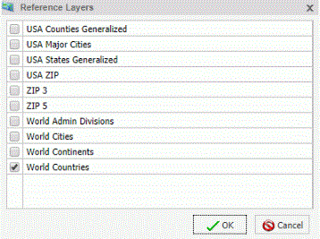 - Reference Layers. Display a layer of boundaries and locations that range from a continental scale to country, state, and even local neighborhood. For example, if you are viewing World data on electricity usage, you may want to add a Reference Layer that displays the borders and concentration of your data within each country.