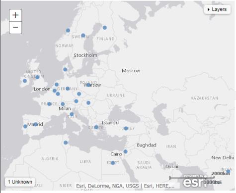 In addition, this integration utilizes the capabilities of Esri by leveraging the ArcGIS JavaScript API and content. Specifically, you can integrate data into maps with published content in ArcGIS Online platform. For more information, see http://www.esri.com/software/arcgis/arcgisonline. Additionally, by using this integration, you can include information about demographics, spending habits, crime, and lifestyle to maps that contain your data. These maps include layers with extensive demographic or reference detail and topography and allow you to view information about people, businesses, climate, and much more.