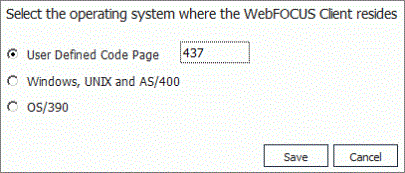 nlscfg.err), found in drive:\ibi\WebFOCUS82\client\home\etc, with theCODE_PAGEsetting. Note that if you click NLS Settings again, your new setting is highlighted as the active code page.