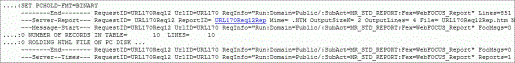This information identifies the variables and commands sent during the request operation. These requests are usually TABLE requests or -HTMLFORM BEGIN/END requests that are sent from the Client to the WebFOCUS Reporting Server.