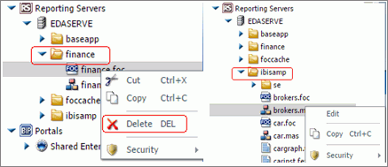 - In the Resources tree, expand the Reporting Servers node, and then expand the EDASERVE node.