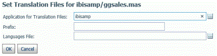 Languages FileIs the file containing the list of language codes for which translation files should be prepared. The file must have the extension .cfg, be stored in an application directory on the application path, and have one language code on each line. You can click the ellipsis to select the application where the languages file is stored.