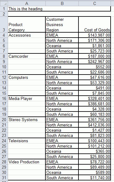 Now change the ALIGN-BORDERS attribute to ALIGN-BORDERS=BODY and rerun the request. The subheadings now align with the report body, as shown in the following image.