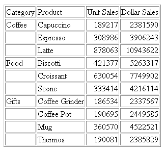 By default, an HTML report contains horizontal and vertical grid lines. You can remove the grid lines or adjust their use on a horizontal (BY) sort field. Grid characteristics apply to an entire HTML report, not to individual components of a report.