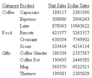 "Report Footing"WHERE CATEGORY EQ 'Coffee';