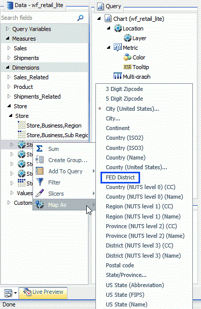 Is the title of the geographic role, which displays when you hover over a data field with a geographic role assigned. You can also assign a geographic role, by title, using the Map As option.