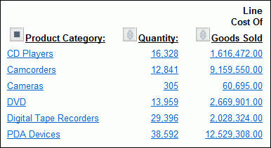 As shown in the following image, the graph appears in a pane above the report. You can see at a glance that PDA Devices constituted about 1/3 of digital sales at the Audio Expert store in Q2.